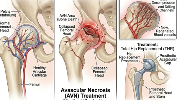 The surgical method used in AVN treatment determines the patient's recovery process. The majority of patients require hospital treatment, which lasts from one day to three days. We use medications to control the patient's pain and swelling. The physiotherapy program enables patients to regain their complete joint mobility and muscle power. The rehabilitation process, along with proper follow-up care, enables patients to resume their normal activities after multiple weeks.