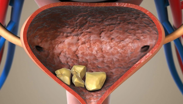 Bladder stones develop when urine remains in the bladder for extended periods, leading to mineralization. This condition occurs because the bladder fails to empty, while dehydration and infection act as additional factors. Urinary substances determine the formation of various stone types.